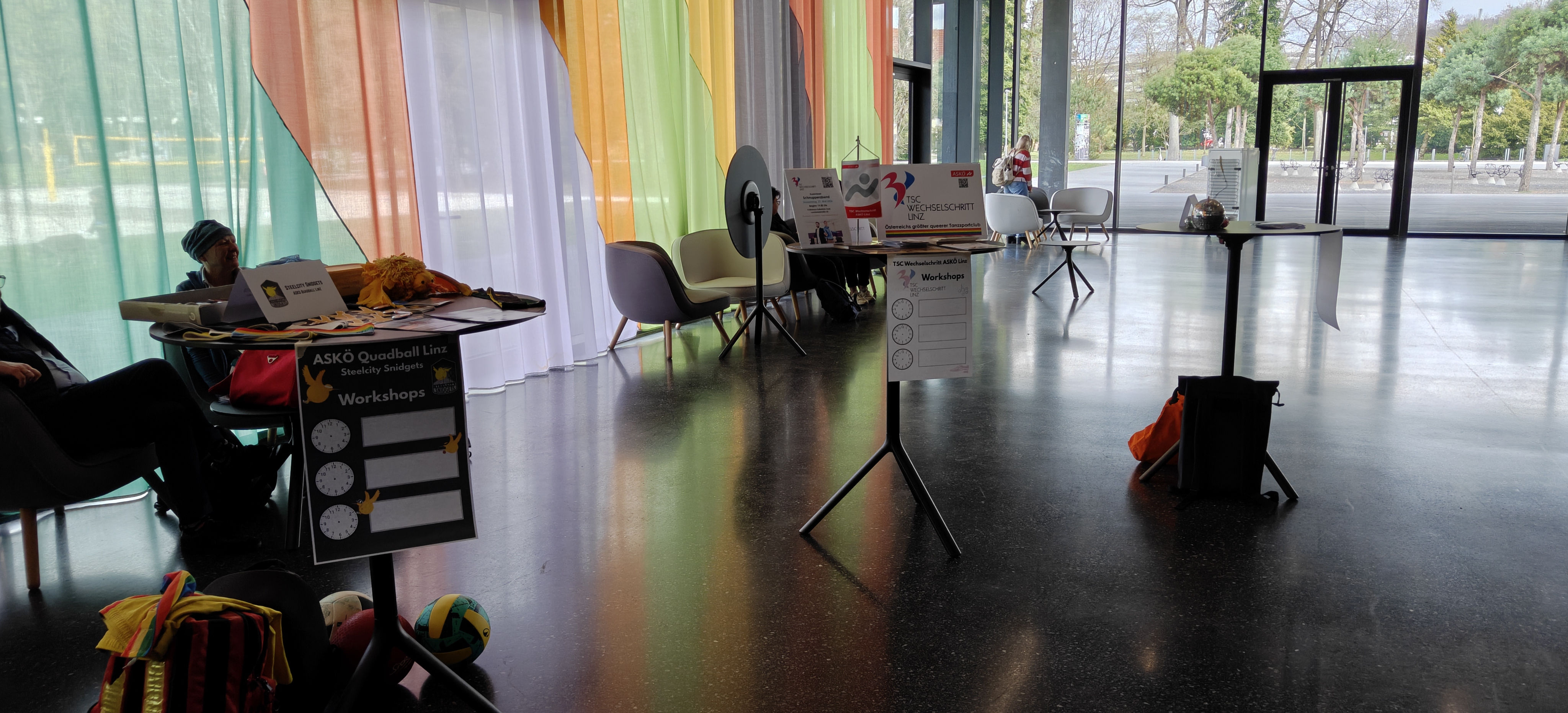 Nach einem spannenden Nachmittag mit Vortrag und Podiumsdiskussion – live aus Graz nach Linz übertragen – hatten wir die Gelegenheit, im Rahmenprogramm unseren Verein und das queere Tanzsportangebot vorzustellen.